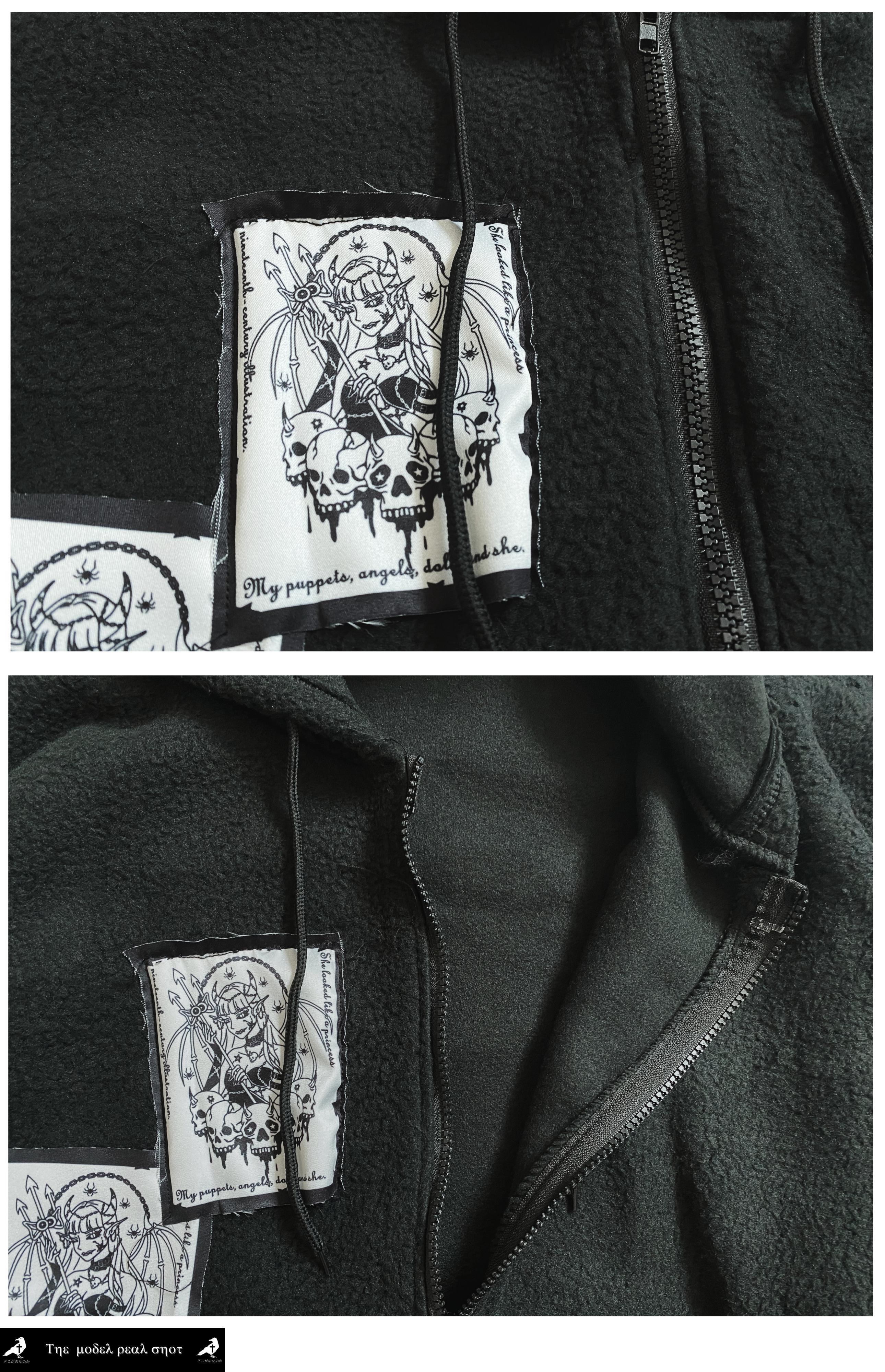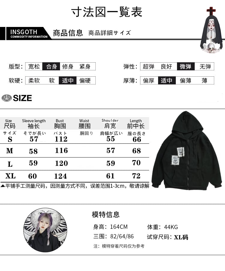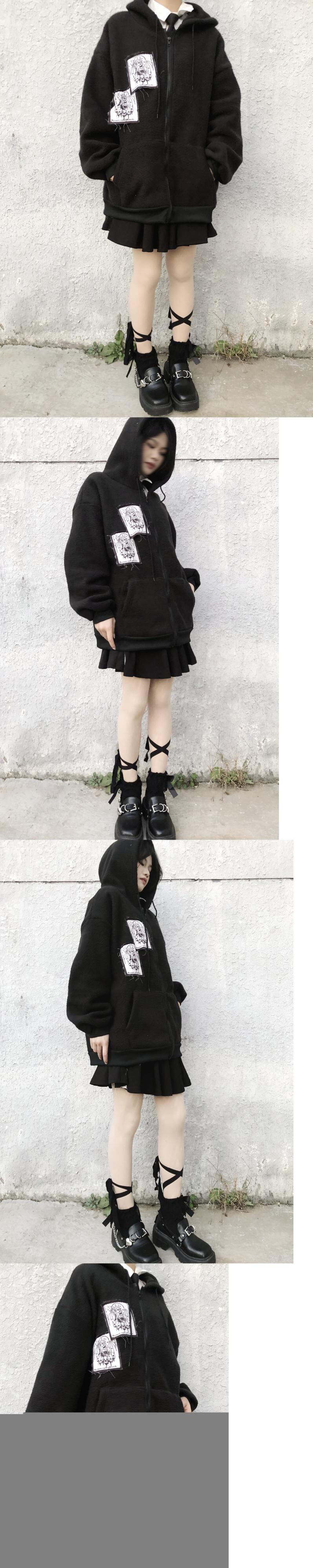 LADY GHOSTダークブラックプリントフードジッパーカーディガンルーズカジュアルジャケット 秋物 コットン ストリート オータム pLegLadGothic284069369519 | LADY GHOST