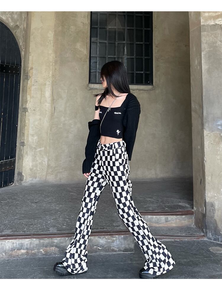 色:黒と白のチェックパンツ,ニットジャケット+ニットスリング(全サイズ)