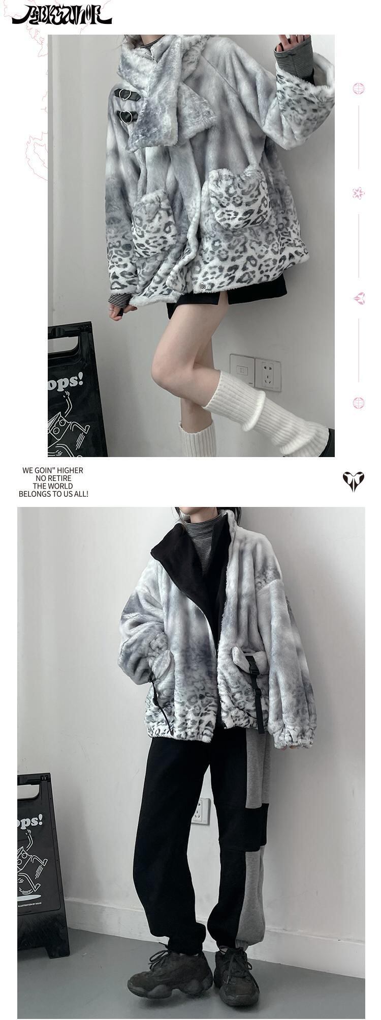 色:ハートレザーボタンファーコート,ジップ調整ボタンファーコート,白い小さなヒョウのセーター,グレーのヒョウのスウェットシャツ,カラーブロックパンツ,このオプションは気にしないでください,ウールスカート